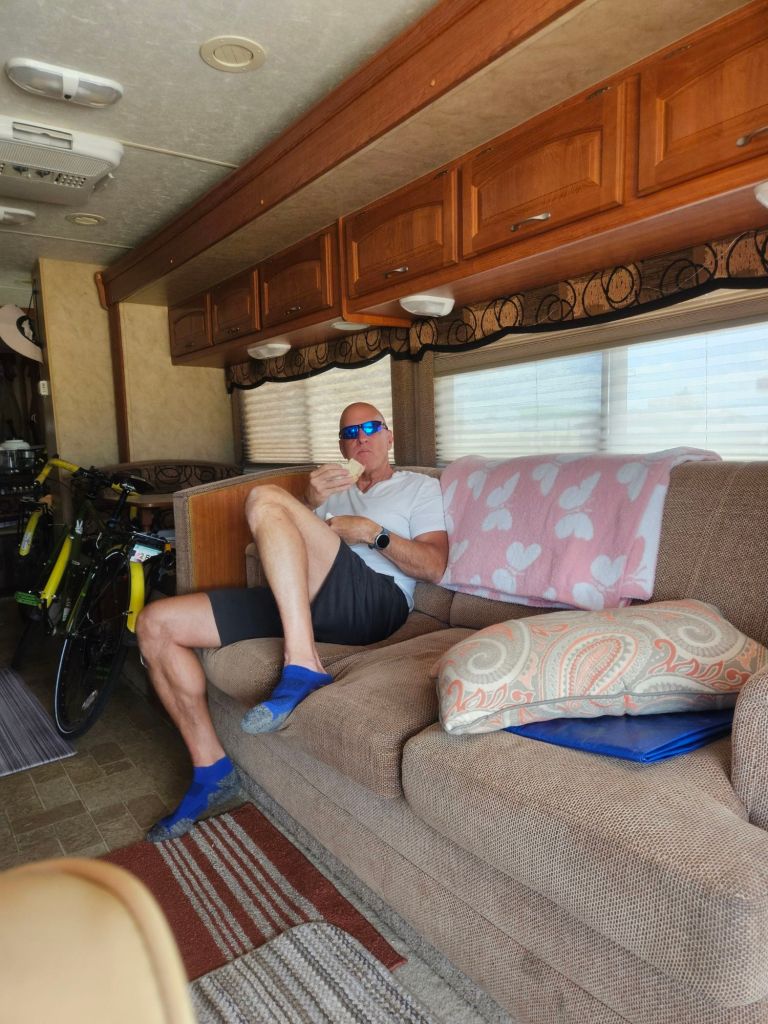 Today we went for a hike along the Wood River and then after showering and cleaning up we took a scooter ride into town and did some shopping. After that it was to the brewery for a beer and some food. Bank to camp for a relaxing rest of the day. Simple easy day