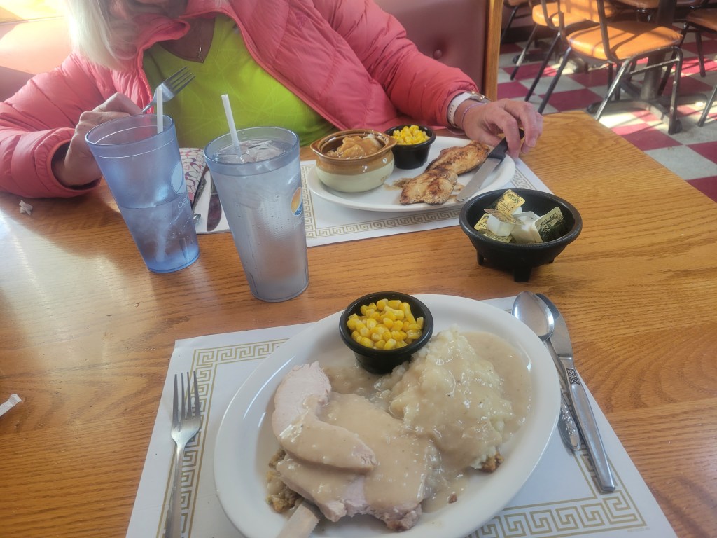 BreakfastLunchDinner. Finally got to eat at a cafeHome for tonightExhausted97 year old. The one on the left, not right