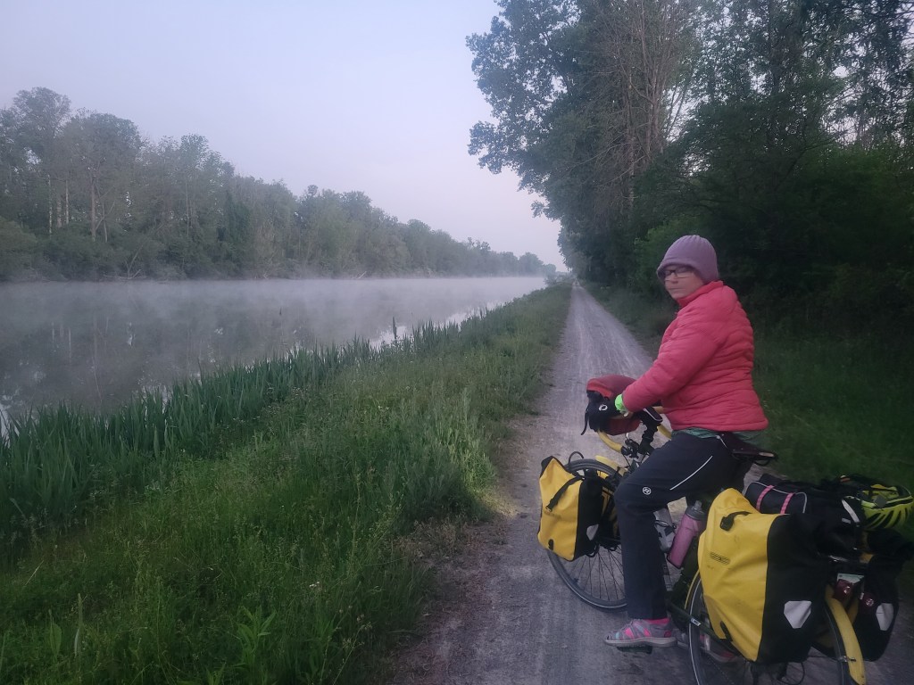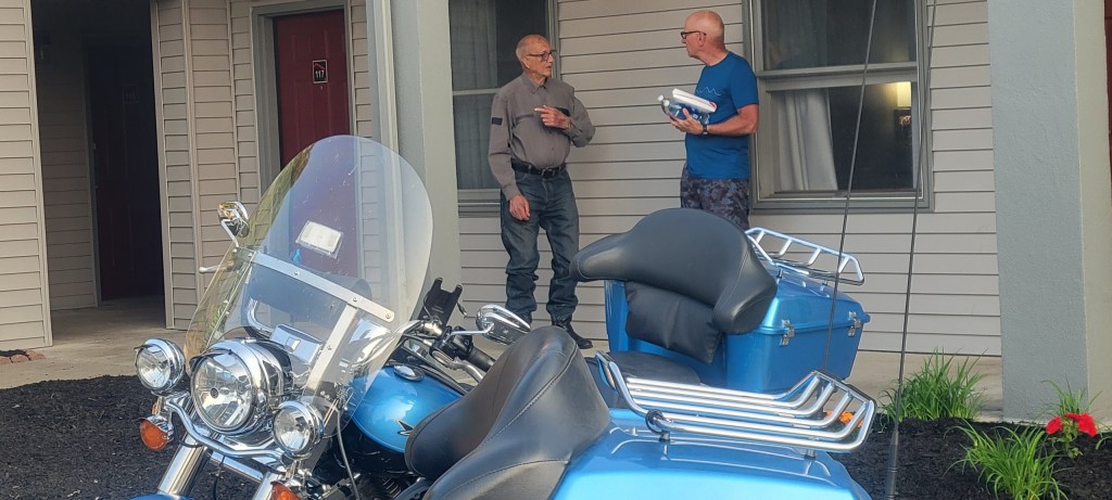Woke up to a chilly morning but a tad warmer than yesterday. Lots of condensation on the tent so had to pack it away wet. Got an early start, around 6:15 AM since we had 60+ miles and we are slow. Ride was the easiest so far for both of us but still didn’t get to hotel until 4:00 PM so about a 10 hour day. Both of us are tired but sleep has been good and we are revived by morning. We saw the most people so far on the trails as it is Saturday and the locals are all out riding their bikes and fishing. Had conversations with a lot of people today and it helps as they all encourage us on our journey. Speaking of encouragement, met two men at our hotel (father and son) that are riding their Harleys from Indiana to New York to a motorcycle rally. The father is 97 years old and rides his own bike!! The father has been going to the rally since 1995 and has won the oldest rider trophy 6 times. They were both amazing to talk to and they both had great sense of humor and attitude. You can do just about anything if you put your mind to it. I’m glad we met them. Yes, we have a hotel tonight so was able to shower two days of stink away and washed some clothes. Have shorter day tomorrow of about 47 miles to Lock 30 in Macedon, NY. and will be camping. I’m writing this from under the sheets so goodnight!