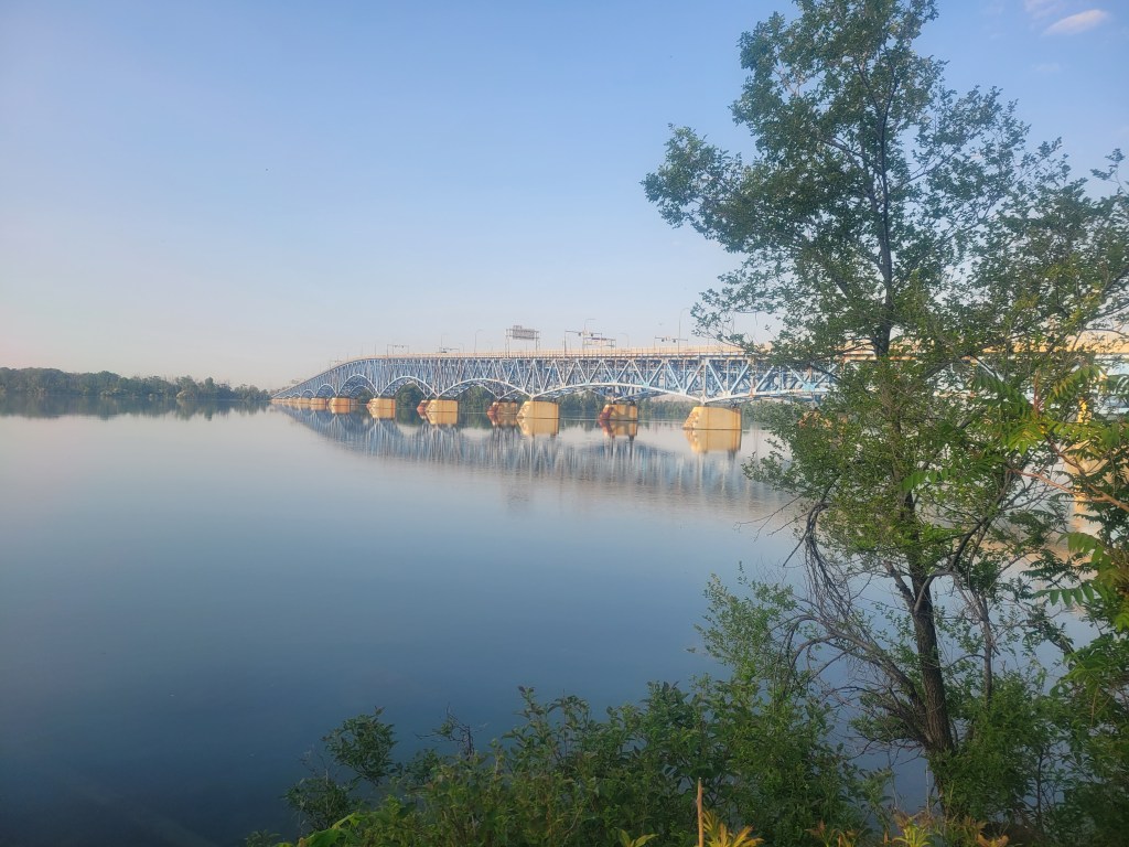 Bridge by our B&BTrail viewTrail view 2Looking down canal at Lockport, NYLockport, NYOnly 18 to goArrivalRaging Niagra riverPack restructuring and drying out tent. We really aren’t this messy!